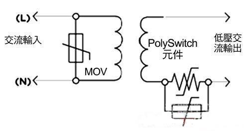 在照明系統中采用第二類功率源可成為降低成本、提高彈性的重要因素之一。固有的有限功率源,如變壓器、電源供應器或電池等,可以包含保護組件,只要不依靠它們限制第二類功率源的輸出即可。非固有型的有限功率源,按照定義,具有一個分立保護組件,當電流和能量輸出達到預定值時它會自動中斷輸出,各種電路保護組件都有助于提供LED照明應用第二類功率源的安全操作。圖4表示了一種協同保護策略的工作原理,它在交流輸入上采用了一個MOV,在輸出電路分支上采用了一個PolySwitch組件,可以幫助廠商滿足UL 1310第35.1小節針對開關和控制裝置的過載試驗要求。