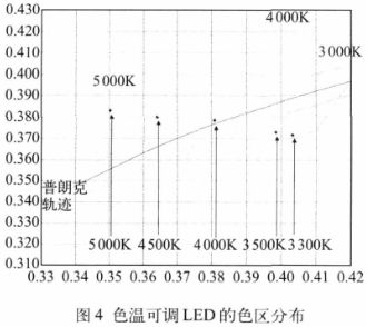 本文介紹了一種新型的色溫可調LED,利用大功率LED 芯片結合金屬基板封裝出了色溫可調的暖白光高顯色指數LED樣品,測試了LED的光譜性能、色溫、顯色指數隨驅動電流的變化,結果顯示,LED色溫可在3300K到5000K連續變化,顯色指數可達90以上,同時具有優良的散熱性能,完全能夠滿足照明場所對色溫以及顯色指數的要求,具有廣闊的應用前景。