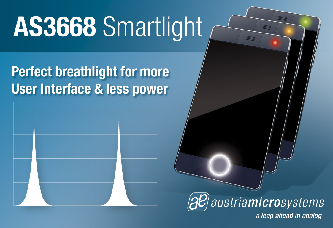 全球領先的高性能模擬IC設計者及制造商奧地利微電子公司(SIX股票代碼:AMS)宣布推出新款智能LED驅動芯片AS3668。新品最多可控制4個LED,為手機和平板電腦帶來精致的指示燈光效,且無需動用耗電顯著的基帶處理器。