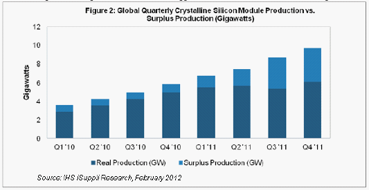 - 2011年光伏供應商的過剩產能達到9.96GW