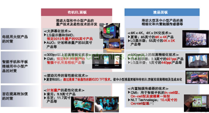 2012年,SMD和LG顯示器計劃量產電視用55英寸面板,友達光電(AUO)和奇美電子(CMI)計劃量產智能手機用中小型面板。日本廠商中,日本顯示器正在以2013年量產為目標。索尼和松下也將共同開發大尺寸面板。隨著各競爭公司紛紛表明涉足,“如果美國蘋果等大客戶有需求,夏普應該也不會拒絕”(顯示器相關分析師)。