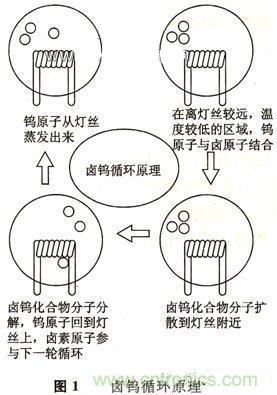 1959年人們發(fā)現(xiàn)鹵鎢循環(huán)可以大大減緩鎢的蒸發(fā)。進而發(fā)明了鹵素?zé)簟L岣吡税l(fā)光效率,延長了燈泡使用壽命。