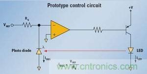 【導讀】在利用光來控制應用的過程中,要長期保持原始設定的發光強度需要一個控制電路來監控發光狀況,并控制供給光發射器件的電流以保持輸出恒定。而采用一個簡單的運算放大器電路就做到,即便發光器件老化,通過調整LED電流,一個控制環也可維持恒定的光強度。