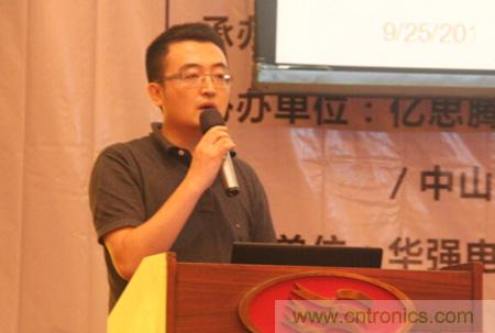 晶豐明源銷(xiāo)售總監(jiān)李寧在現(xiàn)場(chǎng)發(fā)表演講