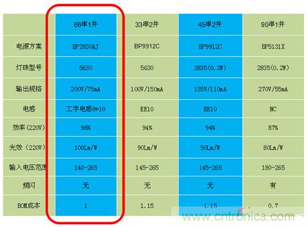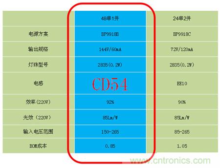 從上圖各種參數(shù)對(duì)比我們可以看出,單從成本來(lái)看,一定是線性方案最低,但同時(shí)會(huì)存在一些問(wèn)題,比如光效,效率并不是很理想,最關(guān)鍵的一點(diǎn),線性方案溫度較高,因?yàn)殇X基板溫度高而造成的硫化而存在一定的風(fēng)險(xiǎn)。所以,從整體參數(shù)對(duì)比來(lái)看,66串1并的方案是性?xún)r(jià)比最高的。同理,8W T管方案推薦的是單串1并BP9918B的方案,單片集成工藝,集成啟動(dòng)電阻,極簡(jiǎn)的外圍電路,系統(tǒng)成本極具競(jìng)爭(zhēng)力,其中值的一提的是該方案采用了CD54電感,可將BOM成本可以做到大概在0.85左右,且可以實(shí)現(xiàn)全貼片的方案,從而幫助客戶(hù)降低人工成本。