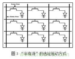 而第三種“半有源”驅動雖然可以較好地避免像素之間的串擾現象,但是由于其像素電路中沒有存儲電容,并且每一列的驅動電流信號需要單獨調制,并不能完全達到上面列出的有源選址驅動方式的全部優勢。