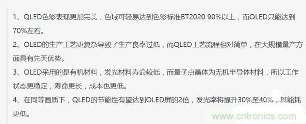 其中很大一部分來源是因為材料需要阻水氧,量子點因為是無機物,所以在宣傳上宣稱自己比OLED穩定,但事實上納米尺寸的量子點很敏感,不只跟熒光粉一樣怕熱,還和OLED一樣怕水氧,大肆宣傳自己比OLED穩定,實在是沒有這樣的資本。