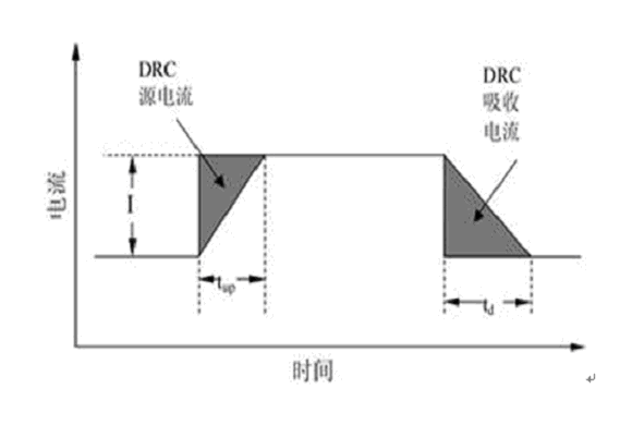 假定DRC電路遠遠快于變換器,則DRC的工作時間取決于DC/DC變換器的電流改變速率Sr,并可分為不同的電流上升速率(Sru)及下降速率(Srd)?,F在,我們研究一個負載電流脈沖期間