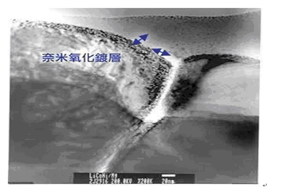 (圖五) 鋰鎳鈷材料之納米氧化物鍍層TEM結構圖