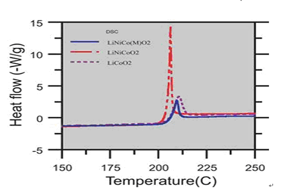 (圖六) 鋰鎳鈷材料經由納米氧化物鍍層表面處理后之DSC放熱圖