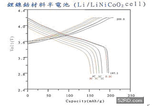 (圖八) 納米結構鋰鎳鈷材料之充放電圖