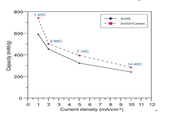 (圖四) 具納米氧化物及合金鍍層之負極碳材電化學特性