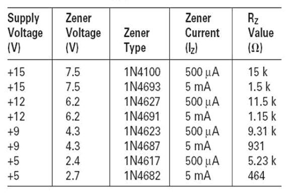 表2:電路圖3和4的一些齊納二極管與Rz電阻值的關系