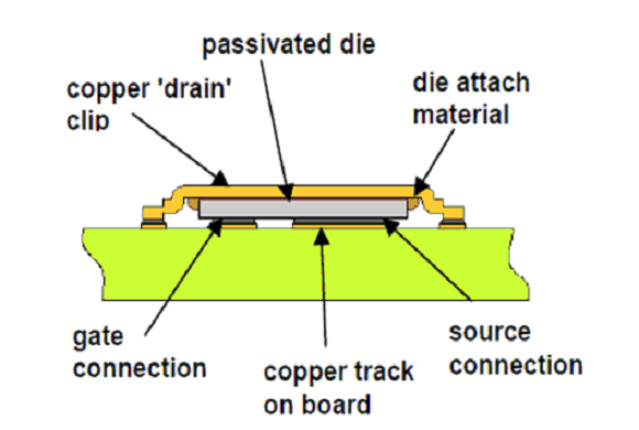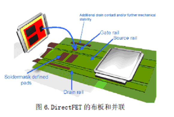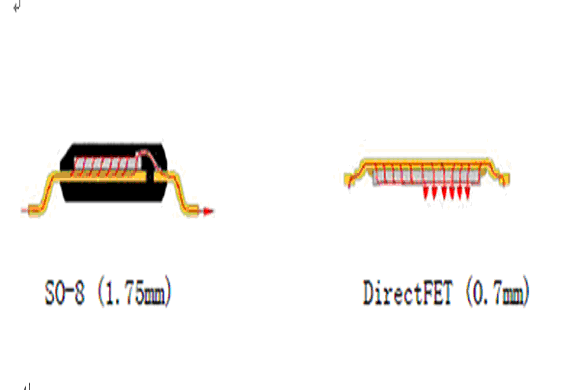 傳統的MOSFET使用引線鍵合來實現硅片和管腳框架之間的電連接,而DirectFET,將接觸面的數目和傳導路徑的長度減到最小從而減小了傳導損耗。