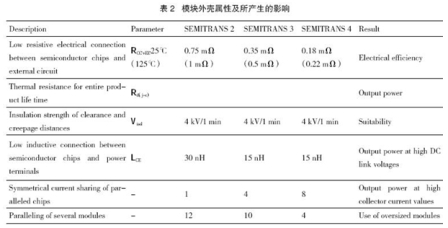 SEMITRANS模塊外殼的主要參數以及這些參數對最終產品性能所產生的影響的詳細信息如表2所列。