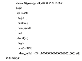 數據寫入控制程序用 Verilog語言編寫,在QuartusⅡ6.0環境下編寫編譯并配置器件引腳。由于源程序非常大,這里只給出了R寄存器賦值的部分程序代碼。