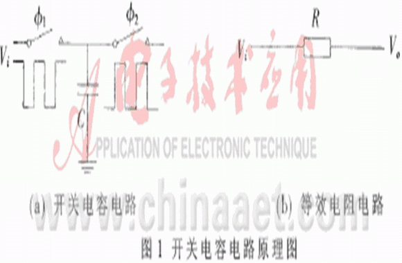 開關電容電路的基本原理是在電路兩節點之間接有帶高速開關的電容器,效果相當于一個電阻。其結構圖和等效電阻電路如圖1所示。開關控制信號φ1和φ2為兩相非重疊的時鐘(圖1(a)給出了頻率為fCLK的兩相非重疊時鐘信號波形)。