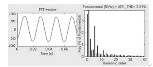 圖4 加載有源濾波器后的電流波形和諧波