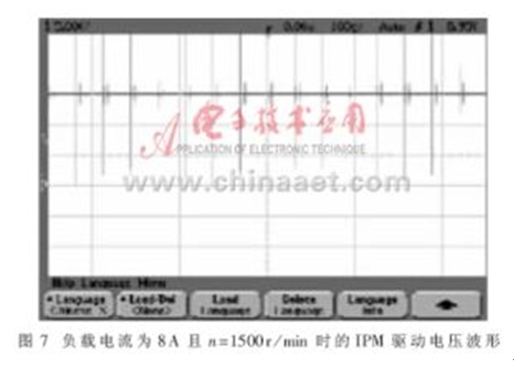 圖7為負(fù)載電流為8A、SRM額定轉(zhuǎn)速運(yùn)行時(shí)IPM的15V驅(qū)動電壓波形。