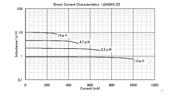 LQH2MC_52系列是以獨特的材料和成型技術為基礎的超薄型鐵氧體磁芯和高度卷線以及終端處理技術實現了最大2.0×1.6×0.70m的小型超薄規格功率電感,特別適合便攜音樂播放器和手機的液晶屏。另外,根據上述技術和磁性電路設計技術,能夠取得充分滿足實際需求的最大為10μH的感值(表2),同時實現了出色的直流偏置特性(圖2)。
