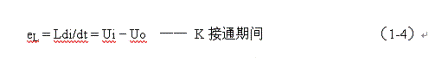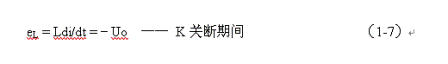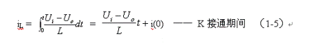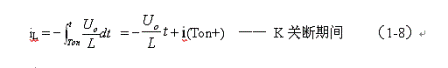 式中–Uo前的負(fù)號(hào),表示K關(guān)斷期間電感產(chǎn)生電動(dòng)勢(shì)的方向與K接通期間電感產(chǎn)生電動(dòng)勢(shì)的方向正好相反。對(duì)(1-7)式進(jìn)行積分得: