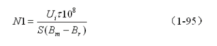 (1-95)式就是計算單激式開關電源變壓器初級線圈N1繞組匝數的公式。式中,N1為變壓器初級線圈N1繞組的最少匝數,S為變壓器鐵心的導磁面積(單位:平方厘米),Bm為變壓器鐵心的最大磁感應強度(單位:高斯),Br為變壓器鐵心的剩余磁感應強度(單位:高斯),Br一般簡稱剩磁,τ = Ton,為控制開關的接通時間,簡稱脈沖寬度,或電源開關管導通時間的寬度(單位:秒),一般τ取值時要預留20%以上的余量,Ui為工電壓,單位為伏。式中的指數是統一單位用的,選用不同單位,指數的值也不一樣,這里選用CGS單位制,即:長度為厘米(cm),磁感應強度為高斯(Gs),磁通單位為麥克斯韋(Mx)。