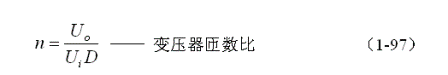 正激式開關電源輸出電壓一般是脈動直流的平均值,而脈動直流的平均值與控制開關的占空比有關,因此,在計算正激式開關電源變壓器初、次級線圈的匝數比之前,首先要確定控制開關的占空比D,把占空比D確定之后,根據(1-77)式就可以計算出正激式開關電源變壓器的初、次級線圈的匝數比: