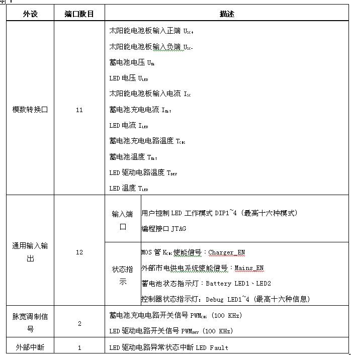 整個(gè)控制器的控制是通過一個(gè)MCU來實(shí)現(xiàn),MCU的主要工作包括以下幾點(diǎn):一是采用MPPT算法來優(yōu)化太陽能電池板工作效率;二是針對蓄電池不同狀態(tài)采用合適的充電模式;三是保證LED驅(qū)動電路的恒流輸出;四是判斷白天黑夜并以此來切換蓄電池充電和放電模式;最后就是提供監(jiān)控保護(hù)、溫度監(jiān)測、狀態(tài)輸出和用戶控制輸入檢測(DIP1~4)等功能。MCU的選擇最主要是滿足ADC、GPIO和外部中斷的需要,不需要單純追求速度。表1列出了實(shí)際電路中MCU外圍設(shè)備的使用情況,考慮到以后擴(kuò)展的需要,主控芯片使用STM32F101RXT6 (意法半導(dǎo)體最新款STM32系列MCU,采用Cortex-M3內(nèi)核)。