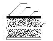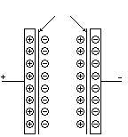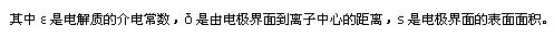 圖一為超級電容器的模型,超級電容器中,多孔化電極采用活性炭粉和活性炭和活性炭纖維,電解液采用有機電解質,如丙烯碳酸脂(propylene carbonate)或高氯酸四乙氨(tetraetry lanmmonium perchlorate)。工作時,在可極化電極和電解質溶液之間界面上形成的雙電層中聚集的電容量c由下式確定: