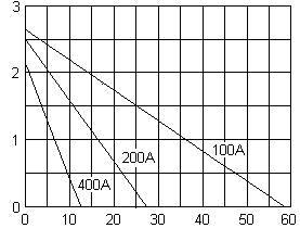 由于等效串聯電阻(ESR)比普通電容器大,因而充放電時ESR產生的電壓降不可忽略,如2.7V/5 000F超級電容器的ESR為:0.4mΩ,在100A電流放電時的ESR電壓降為40mV占額定電壓的1.5%,在950A電流放電時的ESR電壓降為380mV占額定電壓的14%,表明在額定電流下放電容量將為額定容量減小88.5%,這一特性將在圖3中看到。