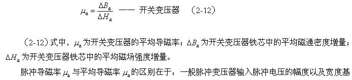 本上都是固定的,并且是單極性脈沖,其磁滯回線的面積相對來說很小,因此,鐵芯的脈沖導磁率幾乎可以看成是一個常數;而開關變壓器輸入脈沖電壓的幅度以及寬度都不是固定的,其磁滯回線的面積相對來說變化比較大,鐵芯導磁率的變化范圍也很大,特別是雙激式開關變壓器,因此,只能用平均導磁率