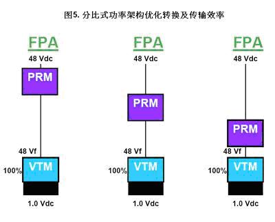 分比式功率架構把DC-DC轉換器的功能重新編排;并以晶片封裝的元件來實現。它的主要元件是預穩壓模塊(PRM)和電壓轉變模塊(VTM)。PRM只有穩壓功能,VTM具變壓和隔離功能,PRM和VTM合起來,就能實現DC-DC轉換器的功能。