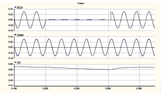 圖2.系統發生短時供電中斷時,ASD運行的仿真結果