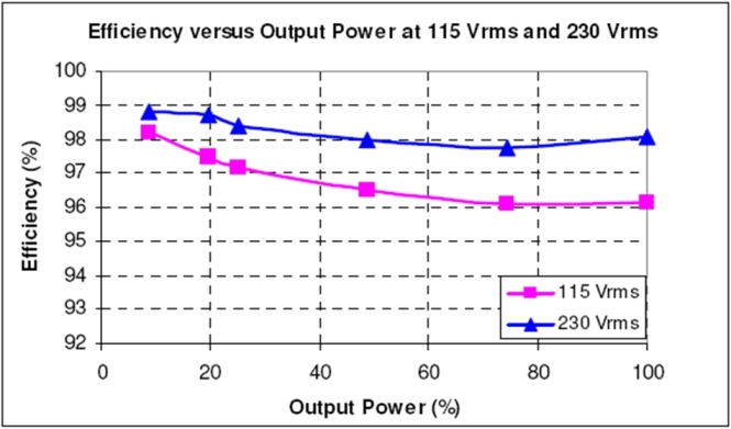 經(jīng)測試,這原型在90Vrms、滿載、無風(fēng)扇(機箱打開,室溫)條件下的能效達94%,而在100Vrms時達95%。在20%負載時能效更接近或超過96%。這種無橋PFC架構(gòu)將是適合大功率應(yīng)用的一種極高能效的解決方案。