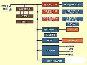 從圖1可以看出,不斷增多的功能促使手機(jī)需要更多不同功率水平的低電壓輸出電平。一個(gè)例子是用于圖像處理的應(yīng)用處理器,它在視頻捕獲期間需要高達(dá)360mw的功率。在滿負(fù)荷運(yùn)行時(shí),手機(jī)內(nèi)部系統(tǒng)的負(fù)載所需的峰值功率通常將超過(guò)4W。這么高的功率會(huì)很快耗盡電池的能量。影響電池運(yùn)行時(shí)間的另一重要因素是電源效率和系統(tǒng)電源管理。