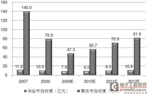 2007年-2012年中國半導體設備市場規模及預測