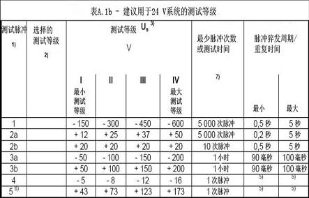 ISO-7637-2:2004標準指定測試了客車以及安裝12V或24V電氣系統的商用車輛中設備的電瞬態傳導的兼容性。抗瞬態失效程度的等級也有定義。該標準適用于所有安裝電氣系統的道路車輛,不受推進模式的約束。