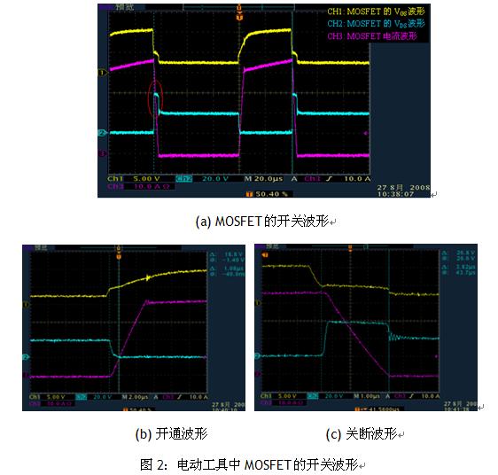 圖2為電動工具中MOSFET(AOT500)的開關波形。