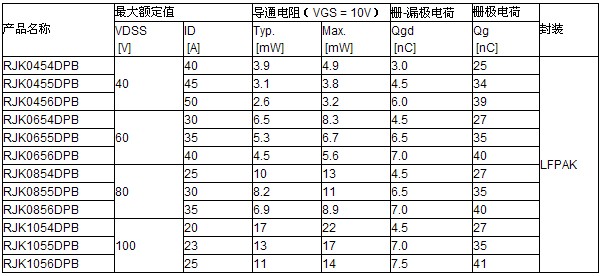 (1)柵-漏極電荷比瑞薩早期的產品約低50%(電壓容差為100V的RJK1056DPB)