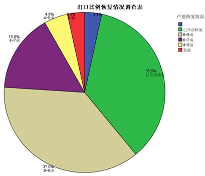 目前,就出口比例恢復情況來看,雖然僅35.6%企業出口已全部恢復,但恢復8-9成以上者占了72.6%的比重,可見,出口受影響已大部分恢復。