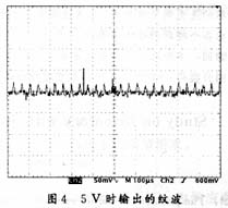 此開關電源5 V時輸出的紋波如圖4所示,峰值為15 mV,紋波不大于0.3%。該電源作為30 kW開關磁阻電機控制器電源,在勝利油田已得到實際應用,工作可靠。