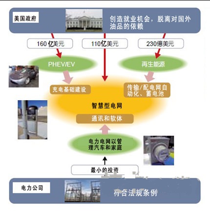 美國在構建智能電網的同時,還將一舉建設充電基礎設施。許多企業為獲得這一市場而參與了競爭,他們的目標是,以電力資訊為核心推出新的服務,以成為汽車和家電產業的主角為目標。