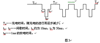 按照麥斯理論,我們對充電過程中的充電電流進行實時控制,即用大電流充電,并在充電過程中,短暫地停止充電,在停充期間加入放電脈沖,打破蓄電池充電指數曲線自然接受特性的限制。但是,理論和實踐證明,蓄電池的充放電是一個非常復雜的電化學過程,由快速充電的電化機理可知,影響快速充電的重要因素是蓄電池的電極極化現象,這是一切二次電池所共有的,包括有歐姆極化、濃差極化和電化學極化。而蓄電池的電極極化現象,又可以通過在充電過程中適時加入放電脈沖來消除。因此,要實現快速充電,就需要多方面的控制,其控制特點為: