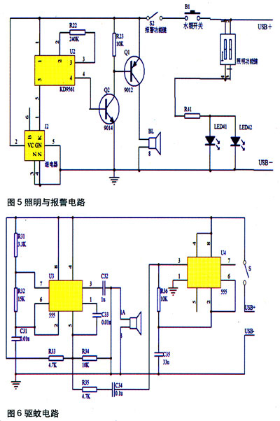 夜行高亮燈管的有效光程為6米。報警系統能夠正常工作。驅蚊系統發出21KHz的噪聲,對蚊子具有明顯的驅趕作用。