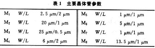 所有NMOS襯底接地,所有PMOS襯底接電源,所有開關管寬長比均為0.5μm/O.5μm。輸入信號為振幅50μA,頻率為200kHz的正弦信號,時鐘頻率為5MHz,Vref=2.4V,VDD=5V。表1中給出了主要晶體管仿真參數。