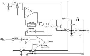 LT1934系列芯片是一種由基準電壓源、振蕩電路和誤差放大器等構(gòu)成的、PWM控制的CMOS降壓型DC/DC控制器。主要指標:輸入電壓為3.3?34V,輸出電壓為1.5?6.0V,可以0.1V為進階單位來進行設(shè)定;低靜態(tài)電流12μA最大值,最大輸出電流300mA。圖4為LT1934的基本電路。