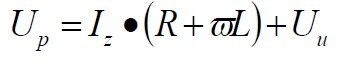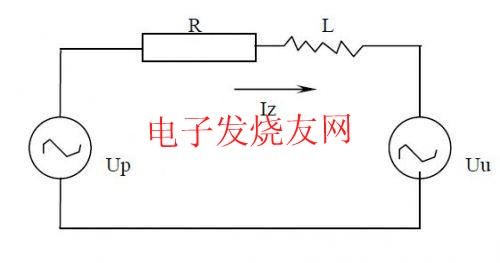 光伏發電并網運行時的電路原理如圖2所示。Up為逆變器輸出電壓,Uu為電網電壓,R為線路電阻,L為串聯電抗器,Iz則為回饋電網的電流。為保證回饋功率因數為1,回饋電流的相位必須與電網電壓的相位一致。以電網電壓Uu為參考,則Iz與Uu同相位,其矢量圖如圖3所示。內阻R兩端的電壓UR與電網電壓相位一致,而電抗器兩端電壓UL的相位則落后于UR90º.由此可以求得UP的相位和幅值: