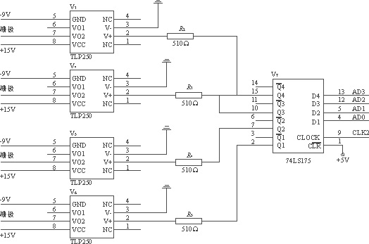 由于在本設計中,采用單片機作為測量系統的核心,因此,控制電路的核心也采用單片機,為了節約單片機的IO口,采用一片74LS175作為控制信號的鎖存器。驅動電路與控制電路的接口電路如圖6所示。
