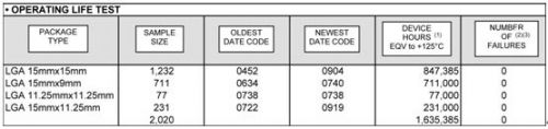 2.預處理2,500,608器件小時,零故障