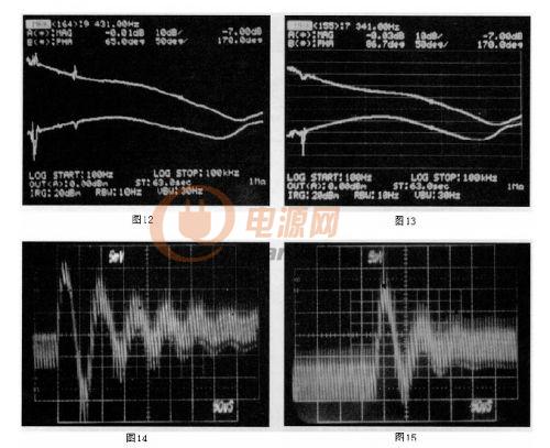 構造一個150W的電流模式正激轉換器,經過修正的小信號環路特性顯示出它在系統瞬態響應時所起的作用。圖13(原文誤為圖12,譯注)給出它的增益-相位圖。與圖11所展示的一樣,獲得了相同的博得圖曲線。此增益相位圖顯示這個系統有86.7度的相位裕量。意味著穩定的系統有快速的瞬態響應。圖15(原文誤為圖13,譯注)給出系統的瞬態響應。為了展示相位裕量的作用,通過增加整個系統的增益和提高穿越頻率,系統的相位裕量會減少。穿越頻率提高時系統的相位裕量在減少。圖12(原文誤為圖14,譯注)給出更高的穿越頻率和更少的相位裕量(65度)時的系統博得圖。其瞬態響應見圖14(原文誤為圖15,譯注),注意更少的相位裕量導致更大的振蕩和更長的調節時間。表1比較了這兩個不同增益大小的系統之間線性和負載調節率的變化。正如前面所述,高的環路增益得到更緊密的線性和負載調節率。還應該注意需在高的相位裕量和較低的環路增益之間取得平衡。